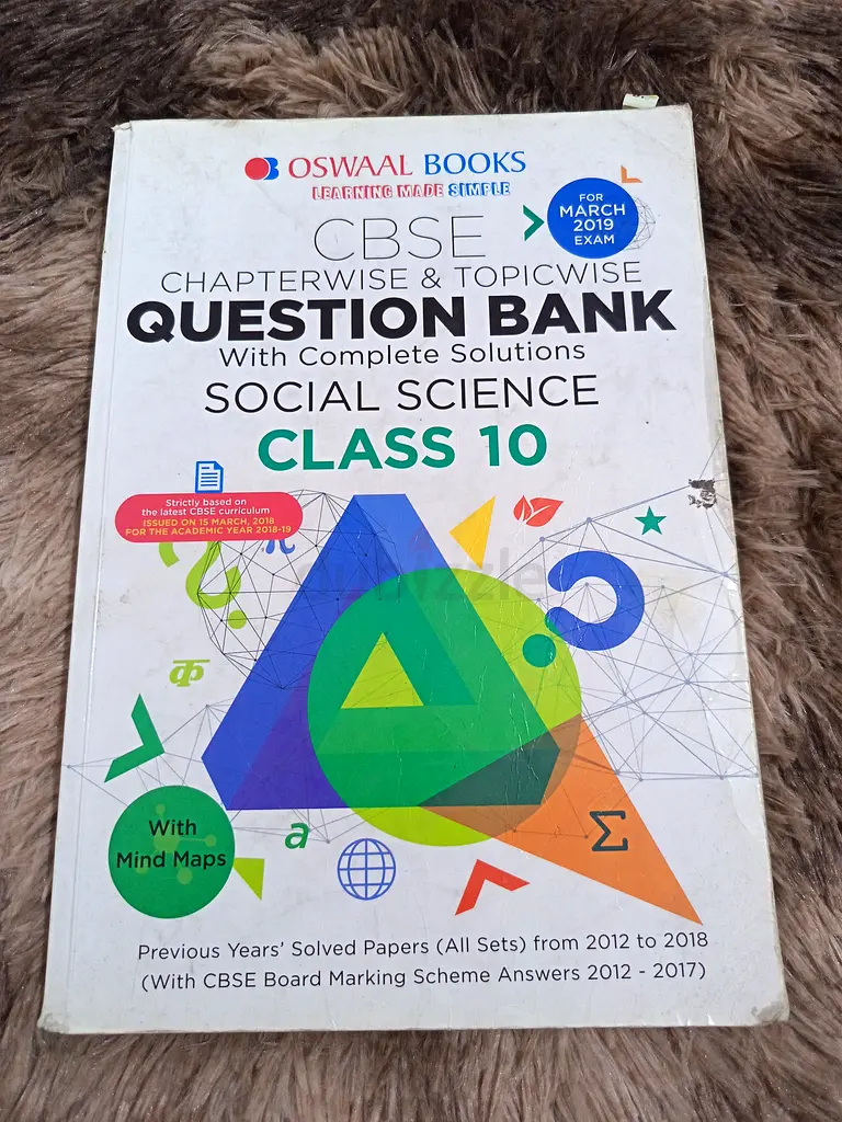 I’m selling an Oswaal CBSE Chapterwise & Topicwise Question Bank for Social Science, Class 10 (paperback). it’s never been used — the pages are clean and the spine is intact with no markings. The book includes chapterwise and topicwise questions with complete solutions, previous years’ solved papers (2012–2018) and CBSE marking scheme answers. It’s suitable for CBSE Class 10 revision and practice.