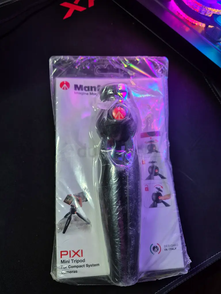 I'm selling a Manfrotto PIXI Mini Tripod. It is brand new, still in its original sealed packaging and has never been used. The tripod is in flawless condition and comes with a warranty. Suitable as a compact tabletop tripod for cameras and small setups.
