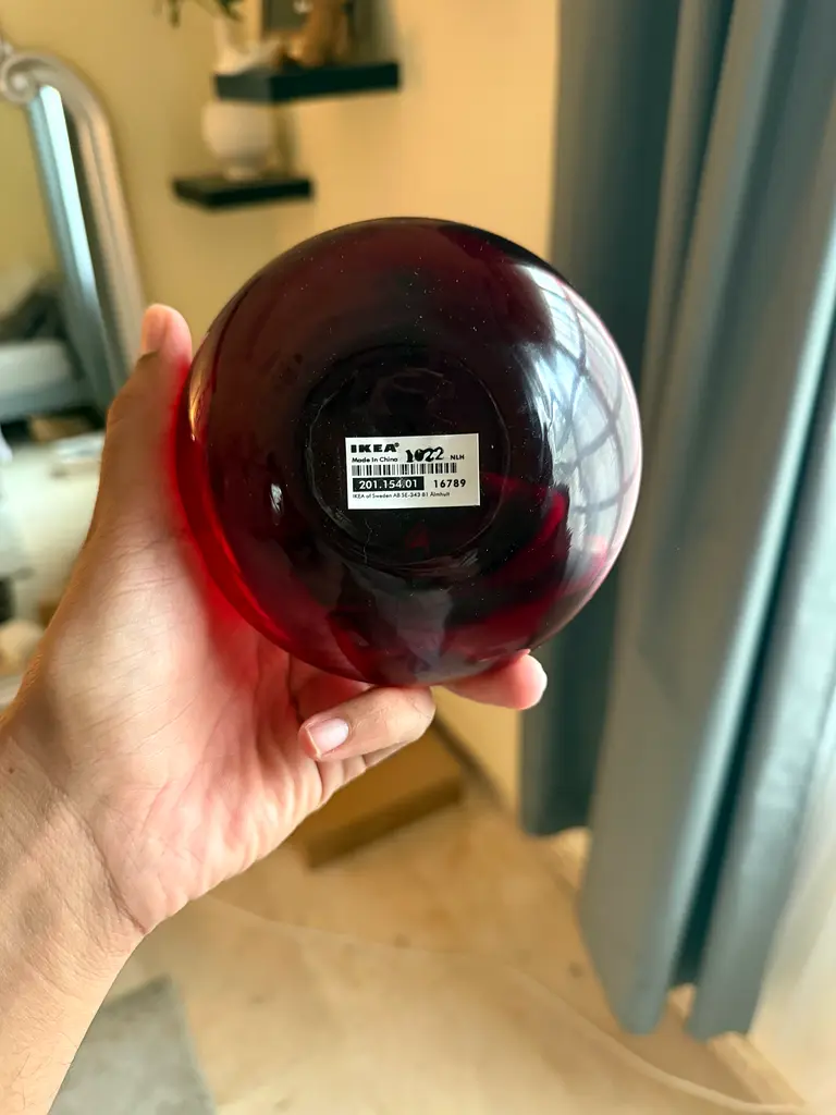 I'm parting with this unique red glass small vase that adds a touch of elegance to any space. It’s in good condition with only light usage, making it a perfect decorative piece for your home or as a thoughtful gift. The vibrant red color catches the eye and showcases its beautiful design.