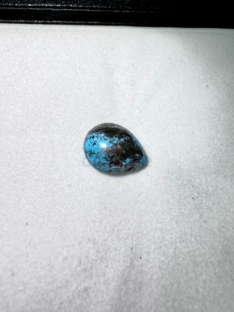 I'm selling a polished blue-black teardrop cabochon I have in my collection. It's a smooth, domed cabochon with a deep blue mottled over a darker matrix; it has a glossy polish and no visible chips or scratches. I haven't used it — it's brand new and in excellent condition, suitable for a collector or to set into jewelry or a display.