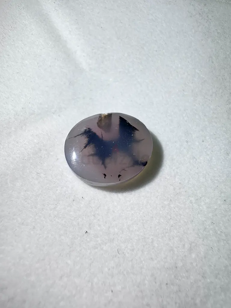 I have a polished dendritic Yamani agate (moss agate) cabochon that I'm selling. It's a smooth, domed cabochon with translucent gray body and distinct black dendritic inclusions that resemble tiny branches or moss. The stone is flawless and has never been used. It's over 10 years old and has been kept carefully as part of my collection — suitable for jewelry making or as a display specimen.