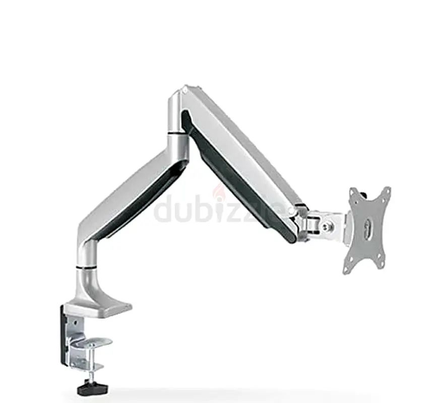 High-quality Tech Skill LDT10-C012 single monitor arm. Supports 13"-32" flat or curved monitors up to 9kg (VESA 75x75/100x100), featuring smooth gas-spring counterbalance for effortless height, tilt (±90°), swivel (180°), and rotation adjustments.