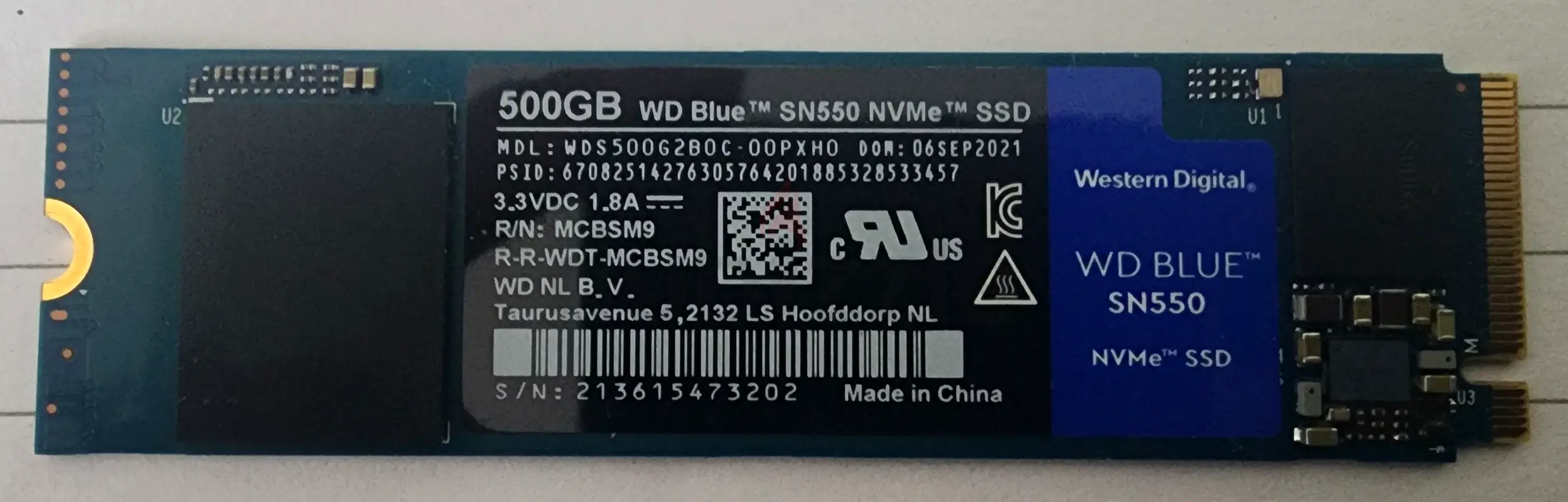 I'm selling my 500GB Western Digital (WD) Blue SN550 NVMe SSD. I've had it for about 2–5 years and it's in excellent condition — light usage only and fully working. No warranty applies. It's the bare M.2 NVMe drive, ready to install in a compatible laptop or desktop.