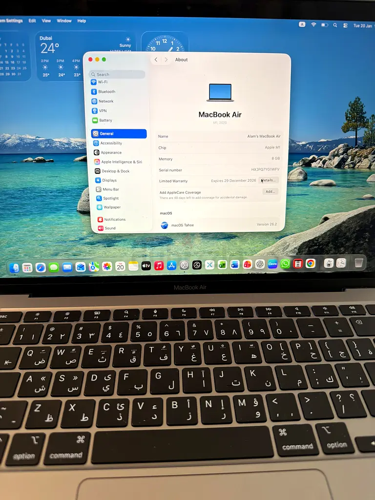 I'm selling my Apple MacBook Air, which is in flawless condition and has never been used. This sleek and lightweight laptop has a stunning 5K Retina display with a resolution of 2560 x 1600 pixels, making it perfect for any visual task. Equipped with the powerful Apple M1 processor and offering 256 GB of RAM, this MacBook delivers outstanding performance for both work and play. It's still under warranty, so you can buy with confidence. Whether you’re working from home, studying, or enjoying some entertainment, this laptop is a fantastic choice. Don't miss out on this opportunity to own a premium device at a great value!