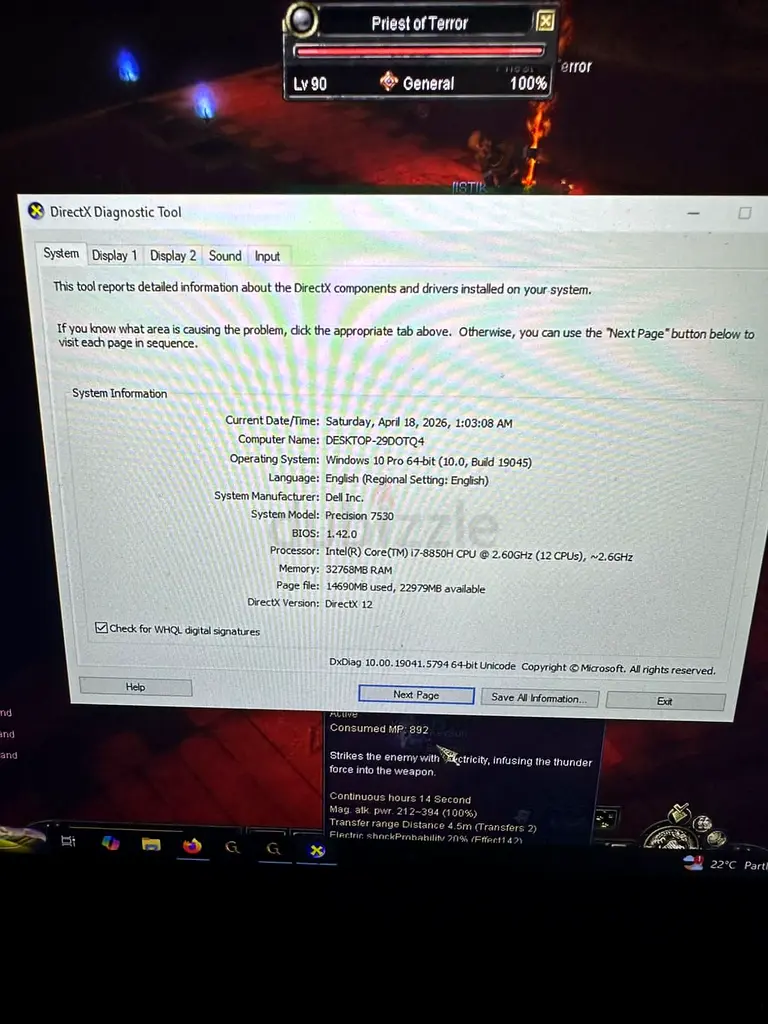I'm selling my Dell gaming desktop, about 6-12 months old and in good condition. I've used it for normal home gaming and general tasks. It runs an Intel Core i7 processor and is paired with a GTX-series GPU (as shown in the screenshot running games). The system uses a 1920 x 1080 (FHD+) display and performs well for modern titles and multitasking. It was purchased with warranty still valid. The PC boots and plays games without issues; no major repairs or modifications. Comes with the original Windows installation and drivers as pictured.