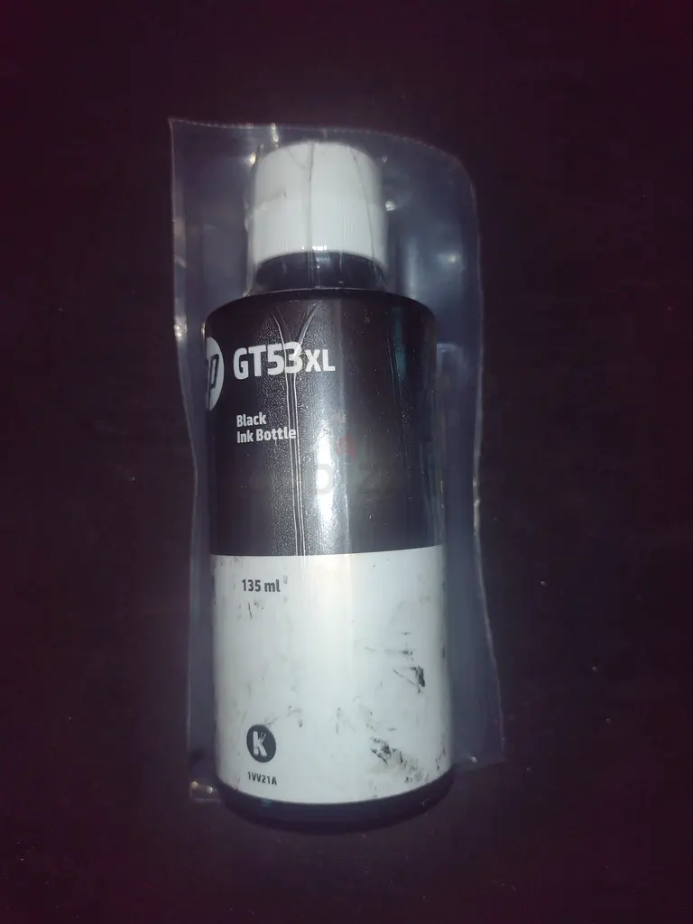 I'm selling a GT53XL Black ink bottle, 135 ml. This product is brand new and has never been used, so it's in flawless condition. The ink bottle is compatible with HP printers and uses inkjet printing technology, ensuring crisp and vibrant prints. It’s perfect for anyone looking to stock up on ink for their printer.