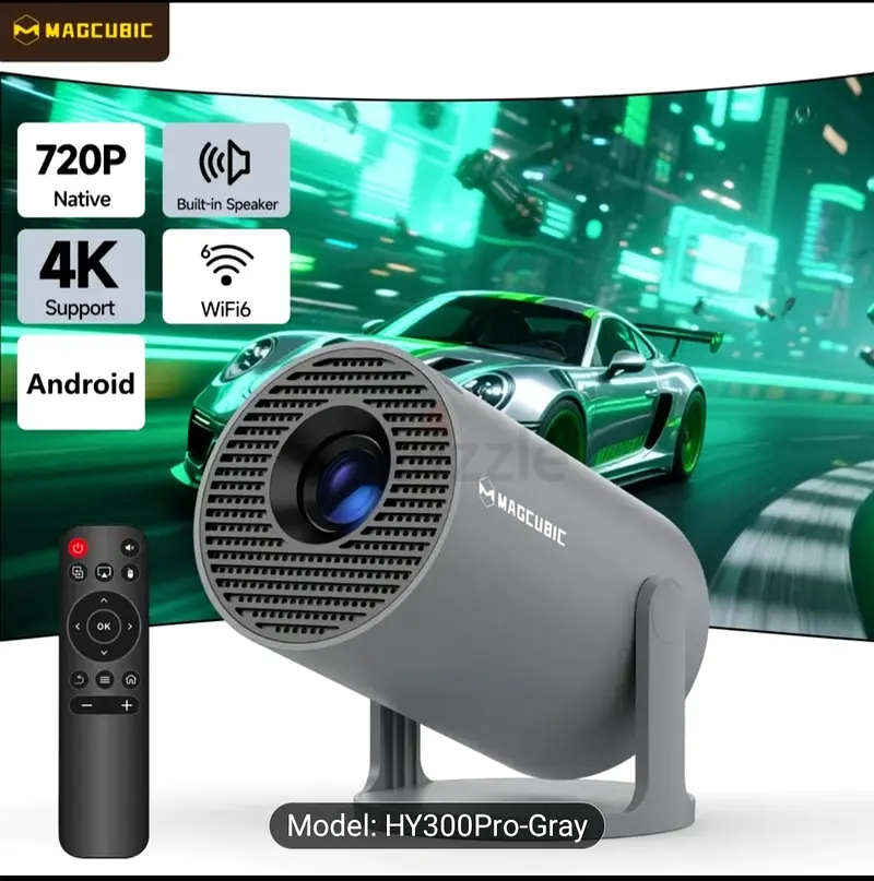 I'm selling my MAGCUBIC Projector HY300Pro, which is brand new and never used. This incredible projector supports 4K resolution and is equipped with a built-in speaker, making it perfect for home entertainment. Its sleek design not only looks great but also enhances the viewing experience, whether you're watching movies or gaming. With a native resolution of 720P and the latest WiFi6 technology, you can enjoy a seamless streaming experience. You'll love the clarity and detail of your favorite content!