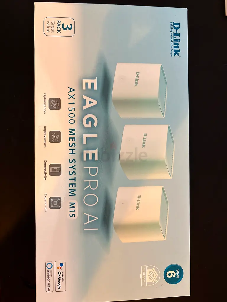 I'm selling my D-Link Eagle Pro AI AX1500 Mesh System M15, which I used lightly and is in flawless condition. This system provides seamless Wi-Fi 6 coverage for your entire home, ensuring that you enjoy the best connectivity possible. With its three-pack setup, it’s perfect for eliminating dead zones and providing strong internet throughout even larger areas. It’s easy to set up and expandable, allowing you to optimize your network based on your needs.