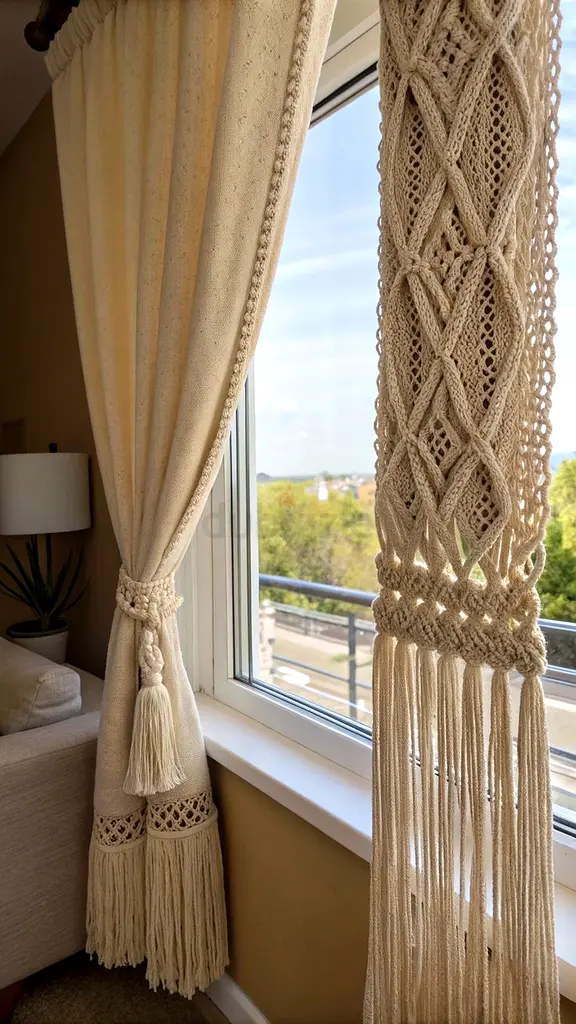 I’m selling a set of handmade macramé boho curtains in a soft cream/beige color. They’re brand new and in excellent condition with only light handling. The set includes full-length drapes with woven macramé panels and long tassel fringe at the bottom and side tiebacks that match. They’re made from natural-feel cotton rope, offer a decorative, airy look rather than full blackout coverage, and work well for living rooms, bedrooms, or balcony windows to add a bohemian touch. I’m including the full set as shown in the photos.