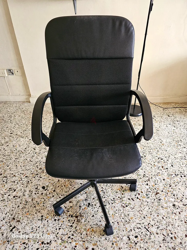 I'm selling my comfortable Ikea office chair, perfect for anyone who needs a reliable seating option for long hours of work or study. It's been in use for about 1-2 years and is still in good condition, boasting a sleek black design that fits any office decor. The chair has normal wear from everyday usage but is still very functional and supportive. If you're looking for a blend of style and comfort, this chair is a great choice!
