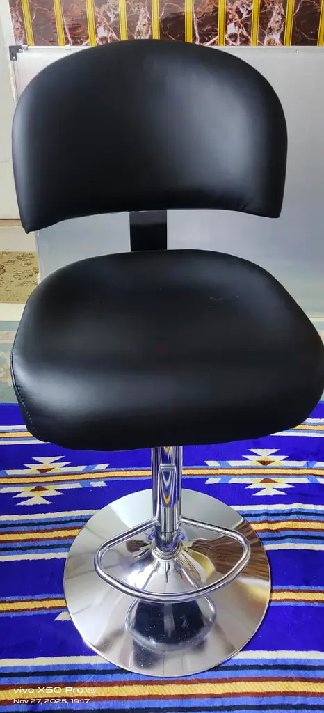 I'm selling a stylish adjustable black bar stool that has never been used. It's in flawless condition and is the perfect addition to any kitchen or bar area. With its sleek design and comfortable round seat, this stool accommodates one person comfortably. The smart black color matches any decor, while the adjustable height feature adds versatility for various counter or bar heights. Don't miss out on this great piece that combines modern design with practicality!