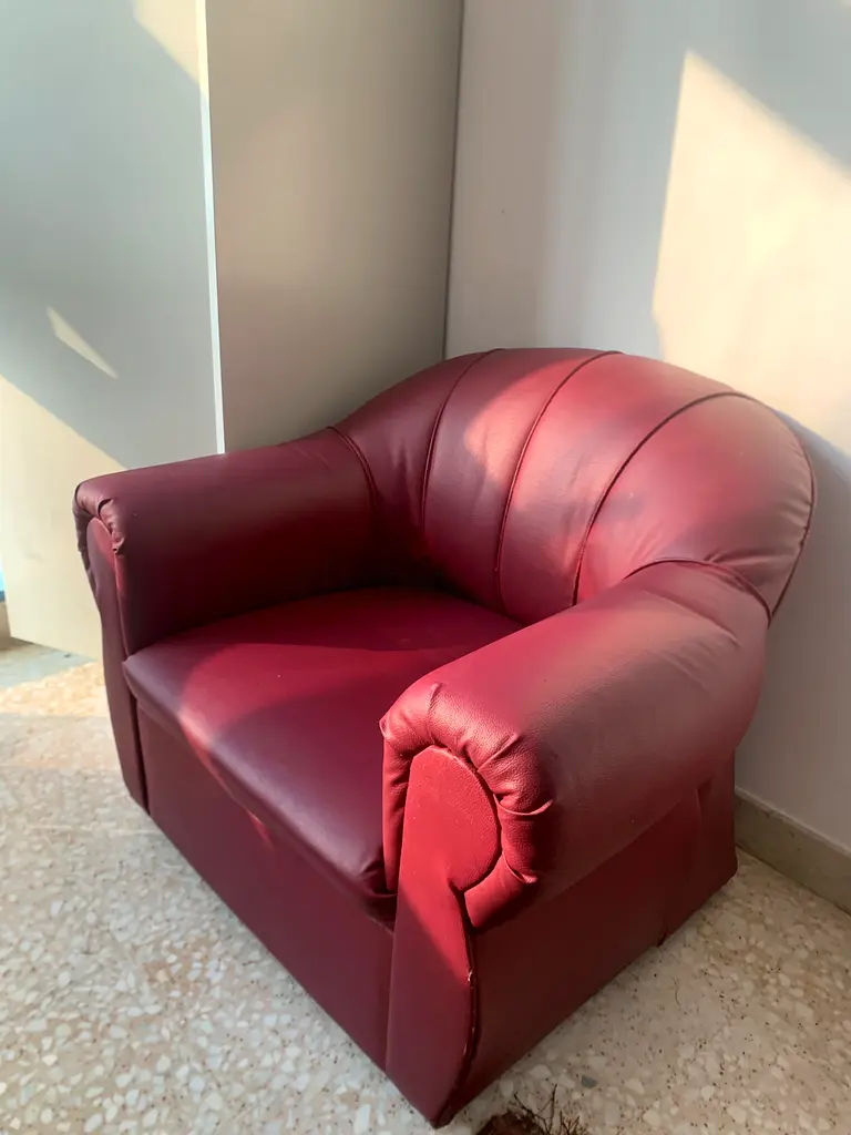 I'm selling my cozy maroon armchair from Home Center, which has been a great addition to my living space. It features a classic design, perfect for adding a warm touch to any room. The armchair is in good condition, with normal usage over the past 1-2 years. It’s a comfortable spot for reading or relaxing, and its rich red color adds a stylish flair.