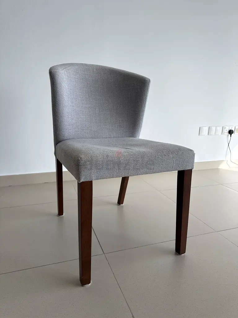 Upgrade your dining experience with this stylish gray upholstered dining chair from Home Center. At just 1-2 years old, this chairs remains in excellent condition, showcasing its durable design and light usage. The sleek gray fabric perfectly complements any decor while providing comfort and sophistication. Ideal for modern dining rooms or cozy kitchens, this chair is a must-have for those looking to enhance their space!