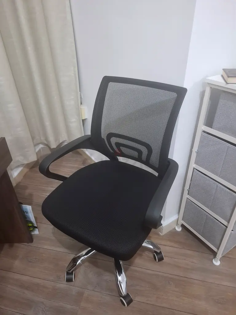 I'm selling my Amazon Basics Ergonomic Office Chair in a sleek black finish. I purchased it recently, but I've only used it once, so it's in flawless condition and practically brand new. The mesh seat ensures great breathability, and the chair offers fantastic lumbar support, making it perfect for long hours at your desk. With its modern design and sturdy chrome base, it will fit seamlessly into any home office or study. Don't miss out on this comfortable and stylish chair!