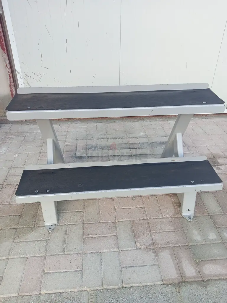 I'm selling my Amazon Basics kettlebell rack, which has been gently used for about 1-2 years. It's in good condition with a sleek gray color that fits well in any workout space. This dual-level rack is perfect for organizing your kettlebells and keeping your workout area tidy. It's designed for normal usage, ensuring durability and stability for your weights.
