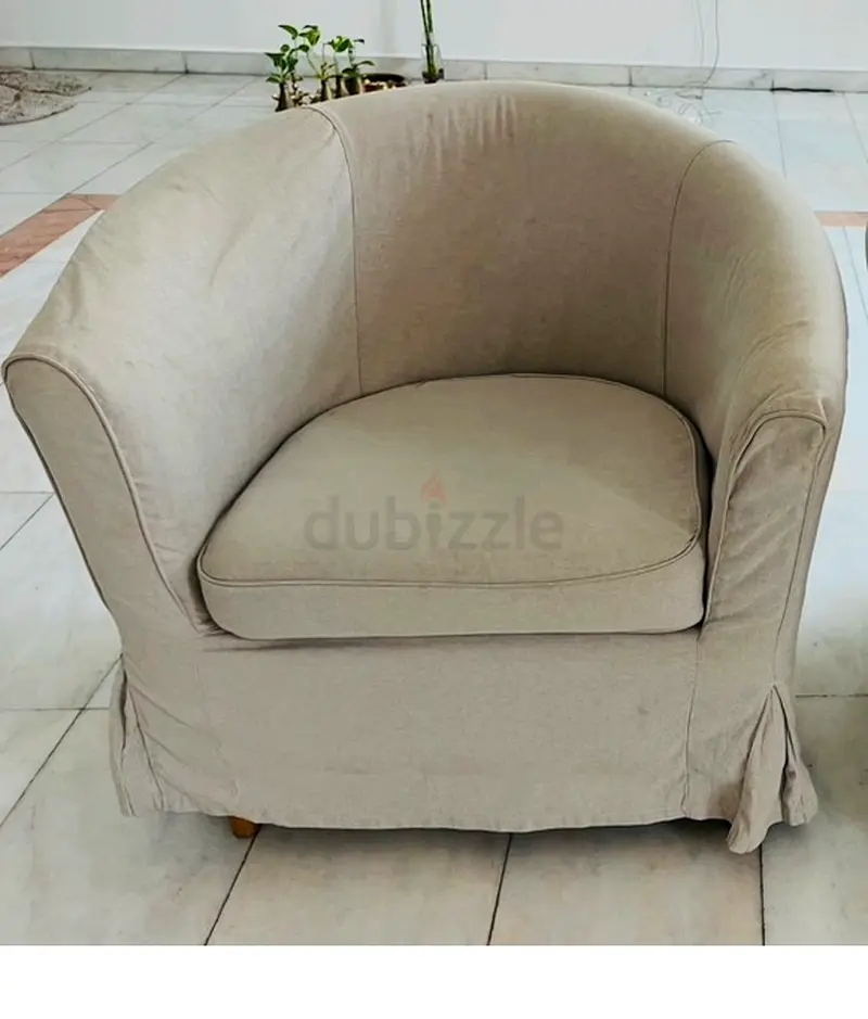 I'm selling my cozy beige accent chair from Ikea, perfect for adding a touch of comfort to any room. It's been gently used and is in good condition, showing just a bit of normal wear. The soft, neutral color makes it easy to match with any decor, whether in a living room, bedroom, or reading nook. This chair is not only stylish but also incredibly comfortable, making it the ideal spot to relax with a book or enjoy a cup of coffee.