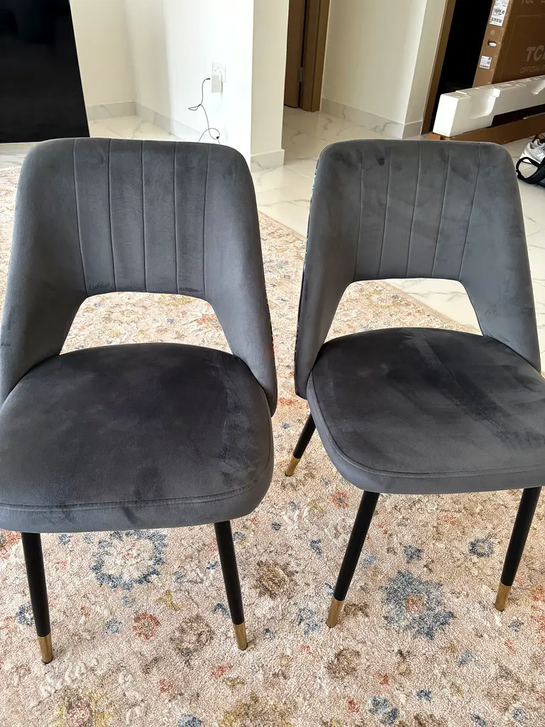 I am selling a set of two modern dining chairs in grey from Danube Home. These chairs are in flawless condition and have never been used.