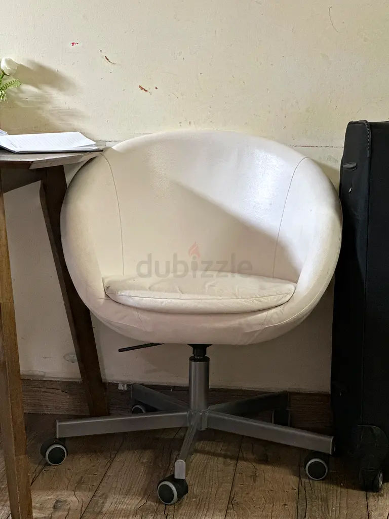 I'm selling a white IKEA compact swivel desk chair I bought about 1–2 years ago. It's in average condition from normal, everyday use — there are some light scuffs and marks but the seat and back are intact and still comfortable. The chair has a compact round padded seat and a swivel base with casters, good for a small desk or home office.
