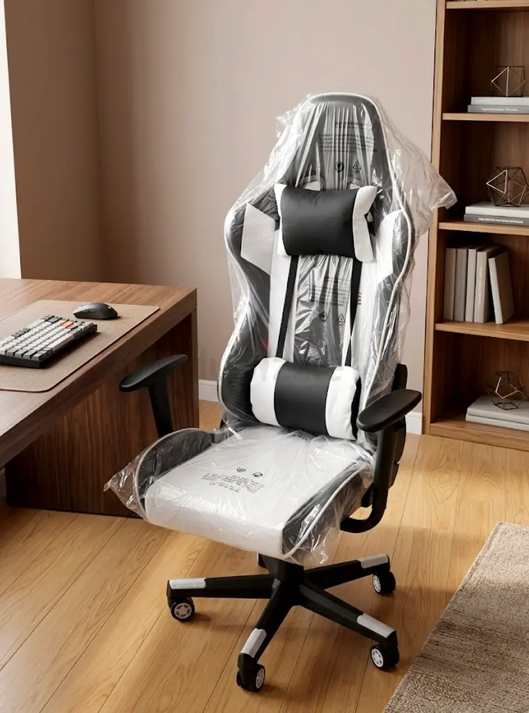 I’m selling a brand-new ergonomic gaming/office chair in black and white. It’s never been used and is still wrapped in protective plastic. The chair has adjustable lumbar and head support cushions, padded armrests, a high back with breathable mesh, and a tilt-and-recline mechanism. The base is sturdy with smooth-rolling casters suitable for hardwood or carpet. Overall condition is flawless — ready to assemble and use in your home office or gaming setup.
