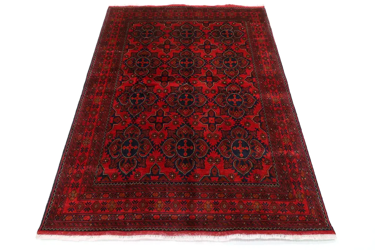 I'm selling a brand new, never-used Afghan handmade traditional red oriental rug. It's a rectangular wool carpet in flawless condition, hand-knotted with classic Middle Eastern/Indian motifs and a rich red field framed by multiple decorative borders. The pile is soft wool and the weave is tight, giving a durable yet refined finish suitable for living rooms, dining areas, or a bedroom. Measurements are approximately 140 x 200 cm (listed as 5 x 7 ft / 154 x 204 cm in the title). I have cared for it since purchase and it has no stains, repairs, or wear.