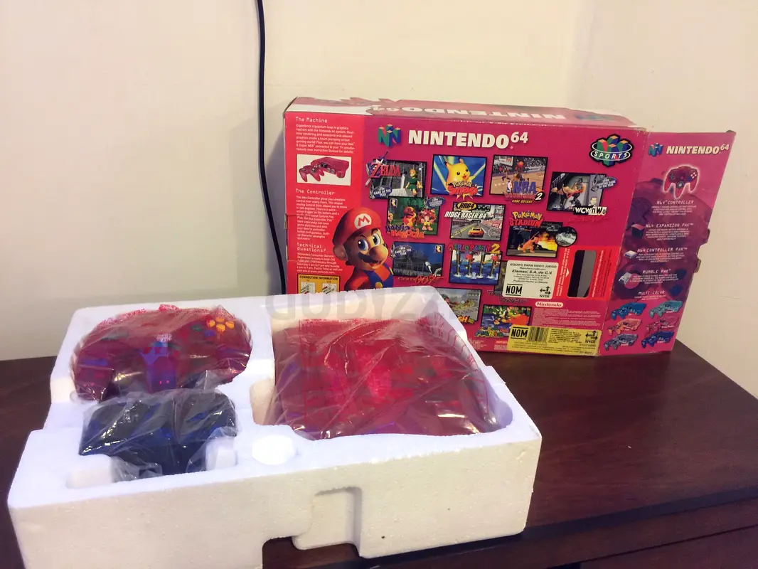I'm selling my Nintendo 64 console, which comes with box and accessories. It's a classic gaming system that holds a special place in many hearts. This particular one is in flawless condition and has never been used, making it a perfect addition to any collector's lineup. It includes the original box and packaging as shown in the pictures. It’s a great opportunity to own a piece of gaming history.