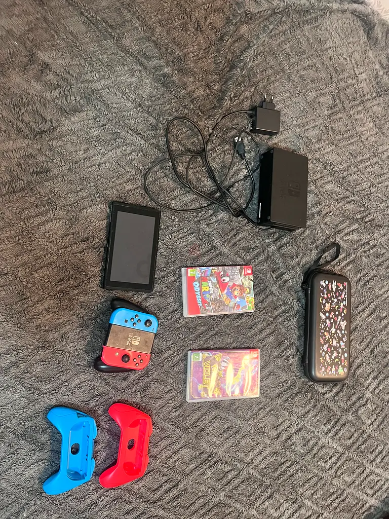 I'm selling my Nintendo Switch bundle, which includes the gaming system along with several games and controllers. This package is in excellent condition and has been gently used. It’s perfect for fun gaming sessions withfriends or family. The bundle comes with a protective case and two controllers, making it ready to play right away. I've included popular games that are sure to provide hours of entertainment.