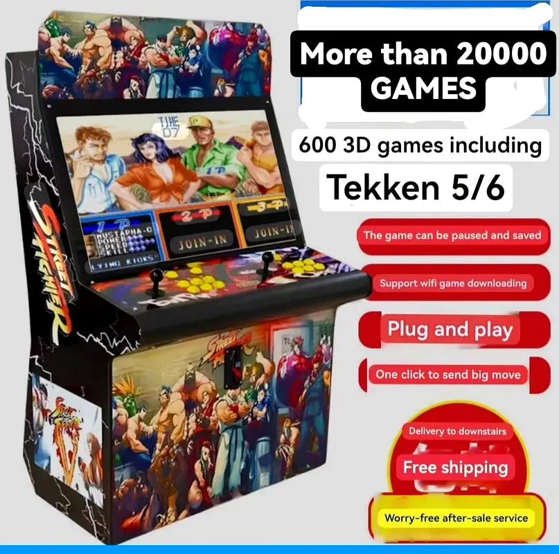 I’m selling this brand new Classic Arcade Game Machine featuring the iconic Tekken 5 and 6! It’s in flawless condition and has never been used, making it a perfect addition for any gaming enthusiast or arcade lover. With over 20,000 games available, you'll have endless hours of fun at your fingertips. The machine boasts easy plug and play functionality, and you can pause the game anytime for convenience. This machine was designed with vibrant artwork that captures the essence of classic arcade gaming.