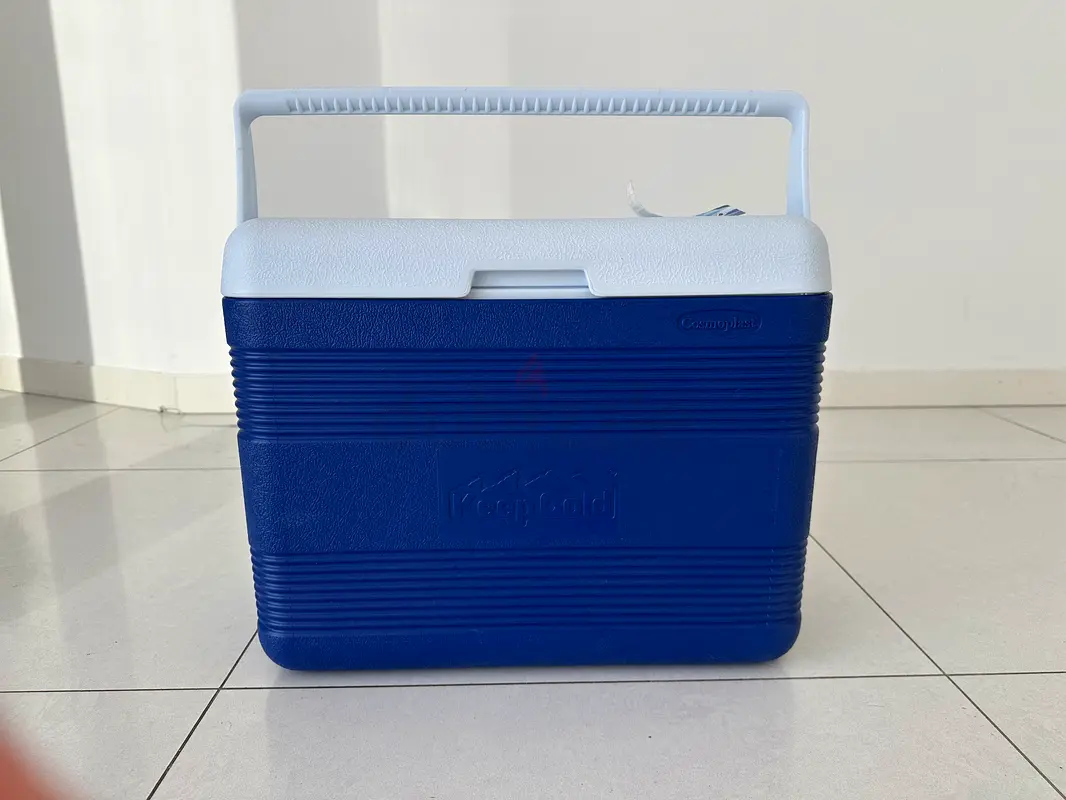 For sale: a Cosmoplast insulated cooler bag with 6 ice packs included, ideal for keeping your items cold.