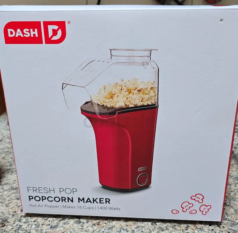 I'm selling a DASH Fresh Pop Popcorn Maker. This is a brand new item in flawless condition and has never been used. It makes up to 16 cups of popcorn using hot air without any oil, making it a healthier snack option. The vibrant red color adds a fun touch to your kitchen. Perfect for movie nights or gatherings with friends and family.