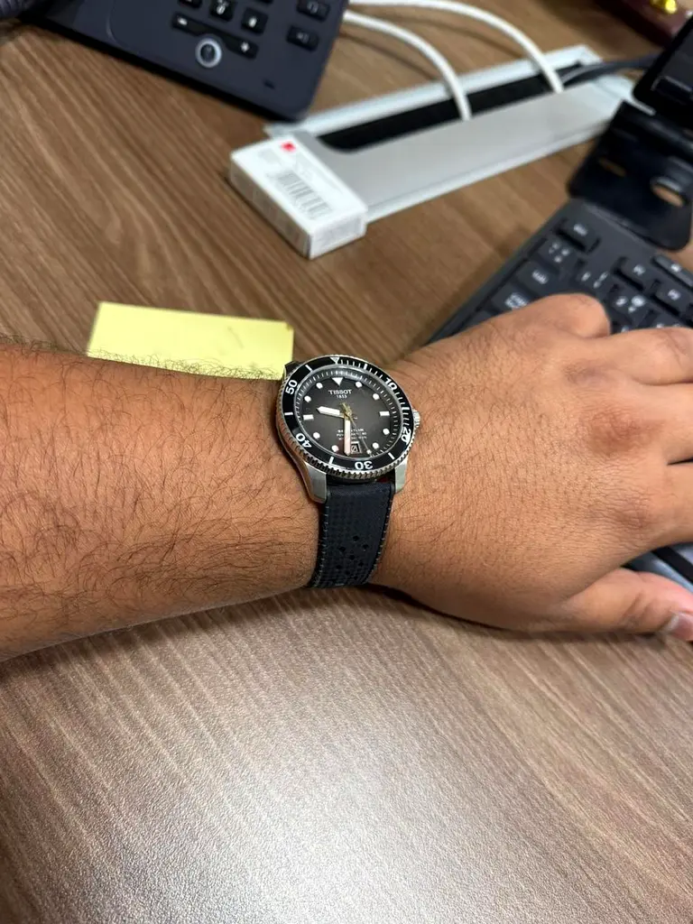 Model Code# T120.807.11.051.00 watch. I bought it about 1 years back and have only worn it lightly, so it’s in excellent condition, still having 2 years warranty It has a black dial with clear luminous markers, a unidirectional bezel, and a domed crystal. The case is steel and it’s fitted with a black rubber strap that’s comfortable and intact. The watch runs well and keeps good time. Selling because I no longer wear it.