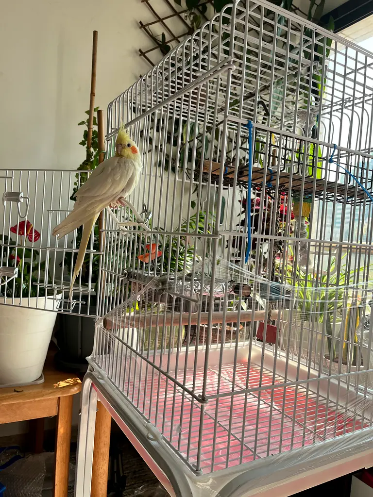 Cage two parts with wheels like new ,with feeding accessories