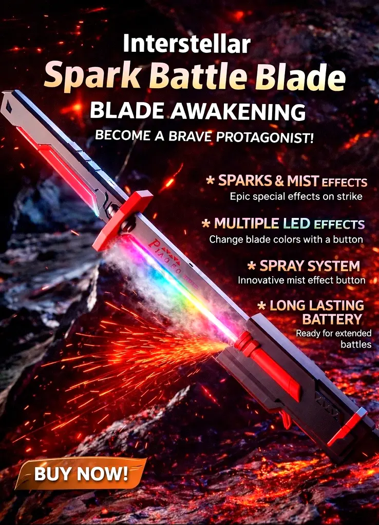 Introducing the Interstellar Spark Battle Blade - your chance to step into the role of a fearless hero! This incredible remote control sword not only looks stunning with its blade awakening effects, but it also features multiple LED lights that change colors with just the push of a button! The interactive spray system adds a unique touch, creating special effects with each strike to elevate your battles to the next level. With a long-lasting battery, you can enjoy extended playtime without interruption. Perfect for imaginative adventures, this sword is brand new and has never been used, in flawless condition.