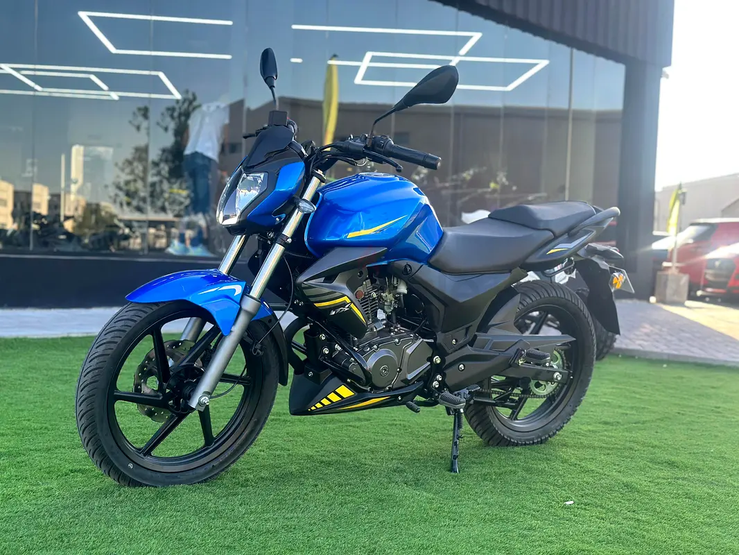 محرك 150 سي سي، أسطوانة واحدة، 4 أشواط – موثوق واقتصادي في استهلاك الوقود مع أداء سلس. قوة 13 حصان / ناقل حركة 5 سرعات – قوة متوازنة للتنقل داخل المدينة والقيادة على الطرق السريعة. وزن خفيف (125 كجم) وسهل التحكم – مثالي للمبتدئين وللمناورة السهلة. فرامل هيدروليكية قرصية أمامية وخلفية – قوة توقف آمنة وموثوقة. شوكات أمامية تلسكوبية – تعليق سلس لرحلات مريحة. مقعد يتسع لراكبين – عملي للاستخدام اليومي. سرعة قصوى: 110 كم/س – رياضية وسهلة التحكم للمبتدئين.