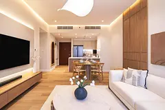 The apartment features a spacious layout with bright living and dining areas, generously sized bedrooms with built-in wardrobes, and a modern kitchen. The maid’s room adds extra convenience for families. Large windows allow plenty of natural light, creating a welcoming and airy atmosphere.