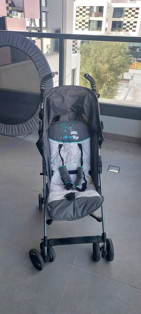 Hauck Speed Plus S stroller with a grey frame and a "Forest Fun" pattern on the seat pad. I'm selling this lightweight and portable stroller that's perfect for families on the move. It's been gently used for about 1-2 years and is in good condition. With its compact fold and lightweight frame, it’s a breeze to carry and store, making it ideal for travel. The extended canopy will keep your little one protected from the sun, while the cup holders make it easy to bring along your drinks while you're out. Plus, there are multiple recline positions to ensure your child is comfortable whether they're napping or enjoying the sights. It's designed for kids aged 2-7 years, but it's great for younger toddlers too. Don't miss out on this convenient stroller!