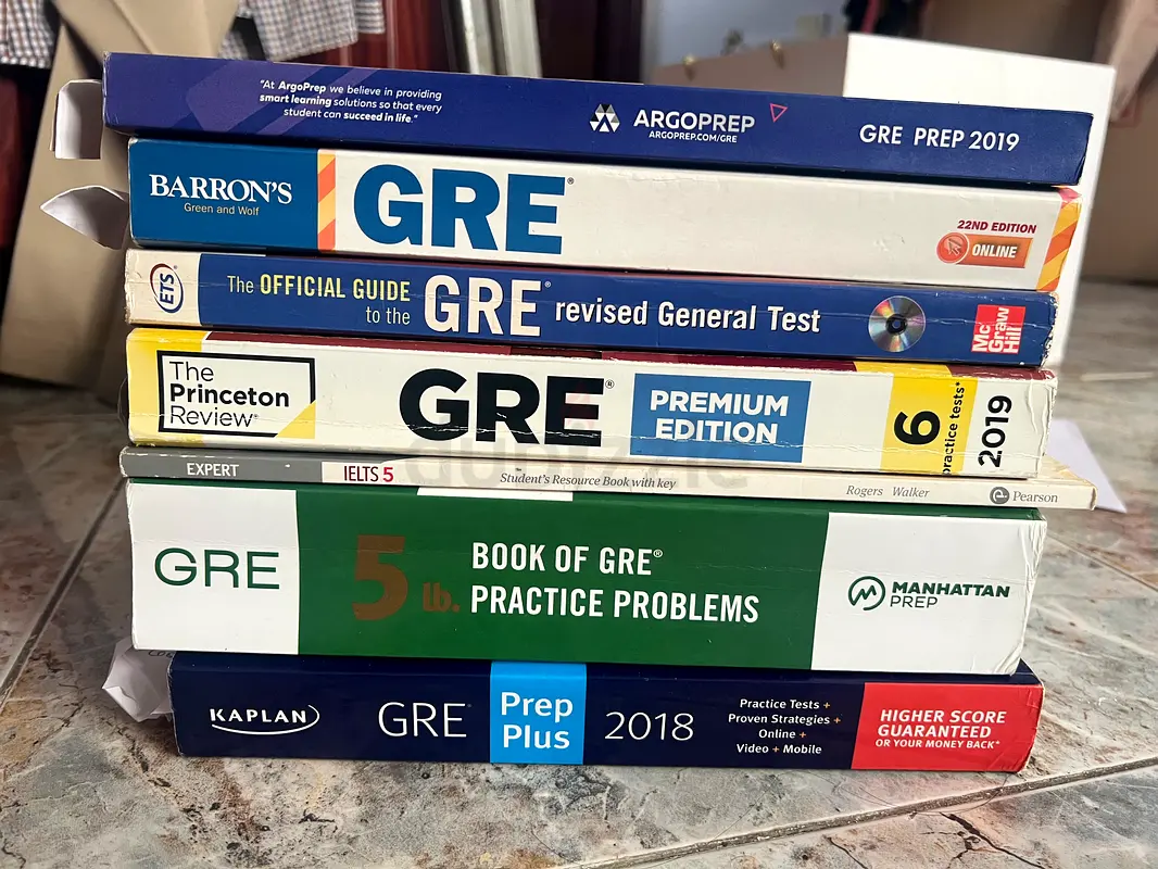 I am selling a bundle of GRE preparation books that I used for my studies. The collection includes several well-known titles to help you get ready for the exam. Each book has been well-preserved and shows normal signs of usage. You will find valuable practice problems and strategies in this set. It's perfect for anyone looking to improve their GRE scores.