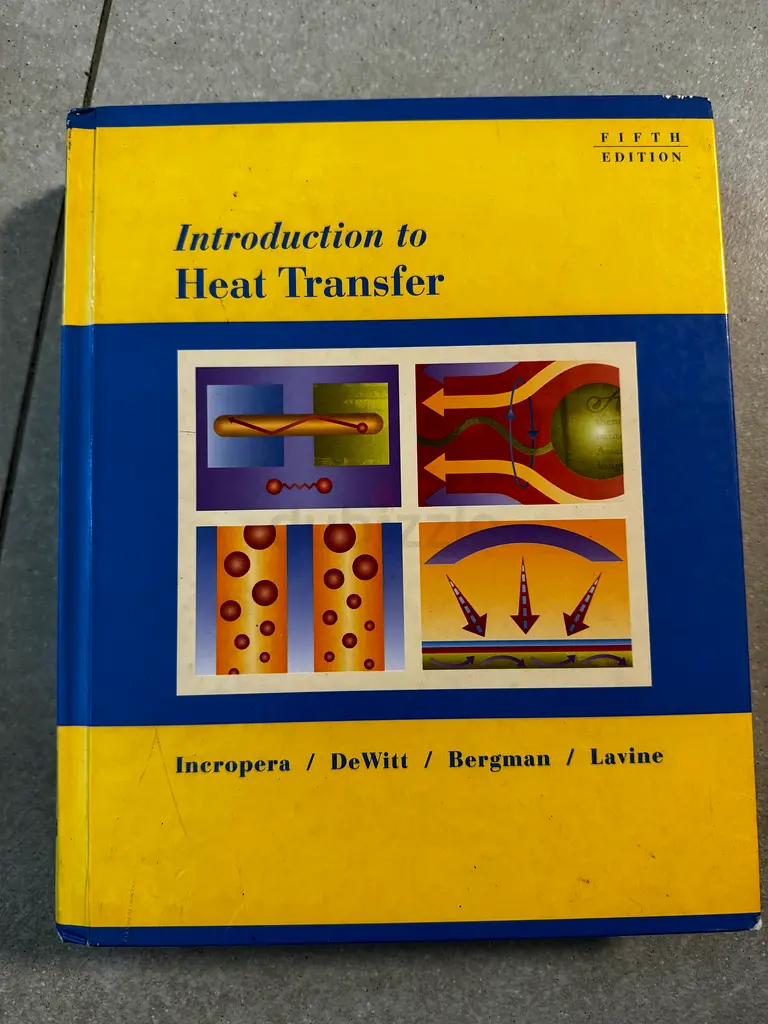 I am selling my copy of "Introduction to Heat Transfer" (5th edition) — a hardcover university-level engineering textbook. The book is about 5–10 years old and has been used for normal coursework but is in excellent condition with no major damage, intact binding, and all pages clean and legible. The cover shows minimal wear at the corners. This is the complete textbook suitable for students studying heat transfer and related engineering courses.