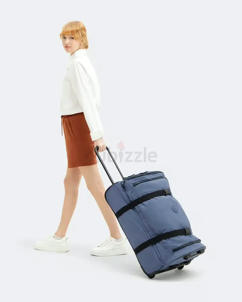 I'm selling a brand new, never used Kipling navy abstract print rolling travel bag. It is in flawless condition and has never been used. This is a large 95L carry-on style roller luggage with a hybrid shell (soft body with reinforced structure). It features a retractable telescopic handle, smooth wheels for easy rolling, and external compression straps to secure contents. I listed the item title with Kipling, while the brand field is set as 'Others'.