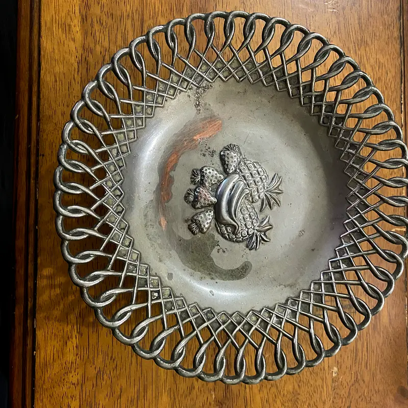 وعاء الفاكهة الرائع هذا، المطلي بالفضة، بتصميمه المتقن. هذا الوعاء، المناسب لعرض فاكهتك المفضلة أو قطع الديكور، عمره أكثر من عشر سنوات، ولكنه لا يزال بحالة جيدة، مما يعكس الاستخدام العادي. بفضل حرفيته الدقيقة وجماله الأخّاذ، فهو ليس مجرد قطعة عملية فحسب، بل يُضفي لمسة جمالية ساحرة على منزلك.