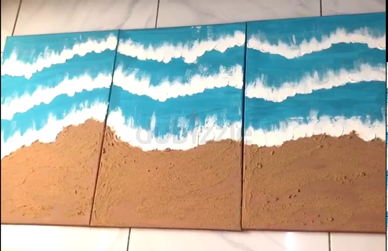 This stunning Seaside Triptych Artwork beautifully captures the essence of the ocean with its vibrant blues and sandy textures. It features three separate pieces that create a cohesive look when displayed together, mimicking the waves lapping against the shore. The artwork is brand new, in flawless condition, and has never been used, making it a fantastic addition to any home or office decor.