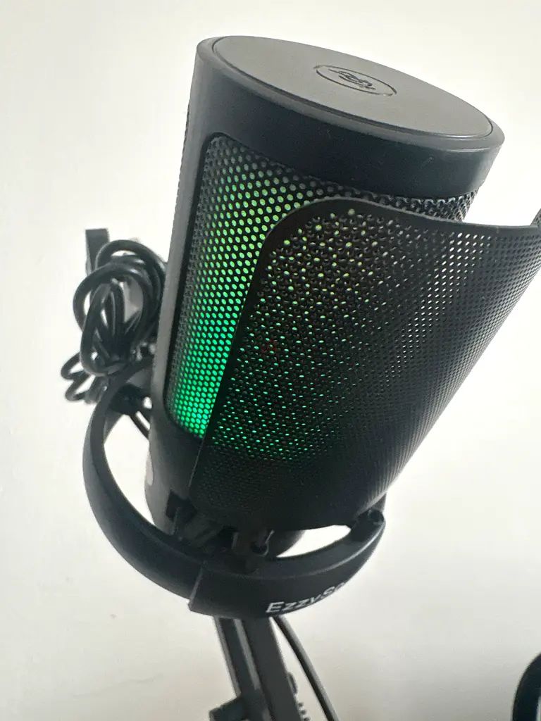 I'm selling a gaming microphone with an adjustable stand that I've used only once, so it's in excellent condition. The microphone has a wired connectivity, ensuring a reliable connection for your gaming sessions or streaming. It includes a cable for easy setup. There’s no warranty since it was purchased without one, but it works perfectly fine.