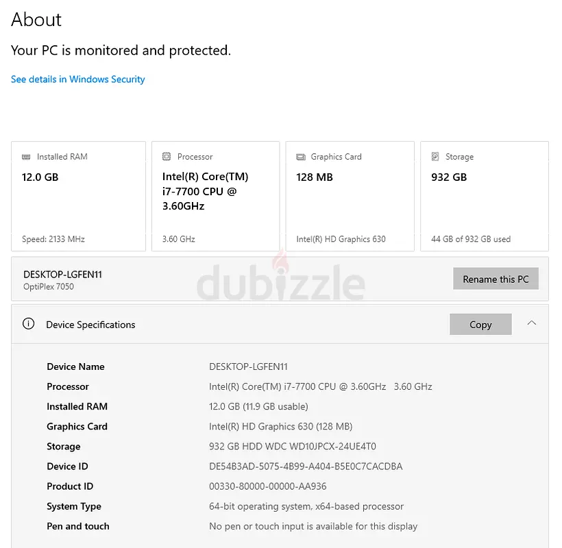 I'm selling my Dell OptiPlex 7050 Desktop Computer, which has been well maintained and is in excellent condition. It's equipped with an Intel Core i7 processor that runs at 3.60GHz, making it suitable for a variety of tasks. This desktop comes with 8 GB of RAM and a hard drive capacity between 750 and 999 GB, providing ample space for your files and applications. The display resolution is 1920 x 1080 pixels, ensuring clear and vibrant visuals. I've used it normally without any heavy gaming or demanding applications, so you can expect reliable performance. There's no warranty left on the device.