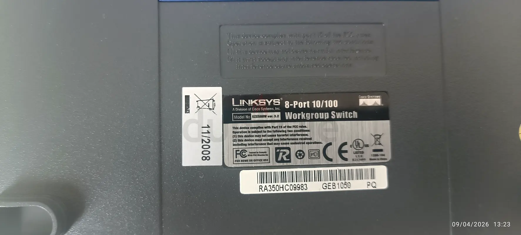 I'm selling my Linksys 8-Port 10/100 Workgroup Switch, model EZXS88W (ver. 3.2). It's about 5–10 years old, was used lightly and is in excellent condition. No warranty applies — sold as pictured and ready for use in a small network setup. Product specifications: