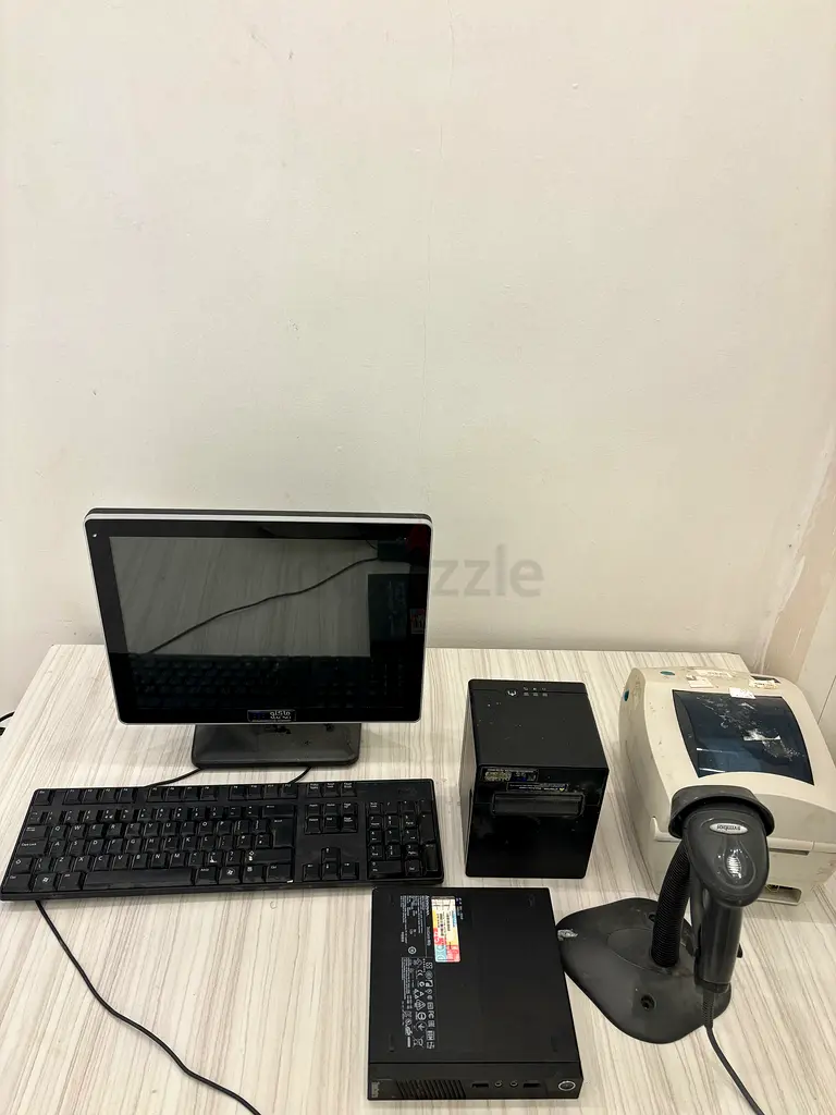 عدة نقاط بيع متكاملة تشمل كمبيوتر مكتبي صغير، شاشة، لوحة مفاتيح، طابعة فواتير حرارية، وقارئ باركود. مناسبة للمحلات التجارية والمطاعم ونقاط الكاشير. الأجهزة بحالة مستخدمة وتعمل بشكل جيد، مع وجود بعض آثار الاستخدام البسيطة. جاهزة للاستخدام مباشرة بعد التوصيل.