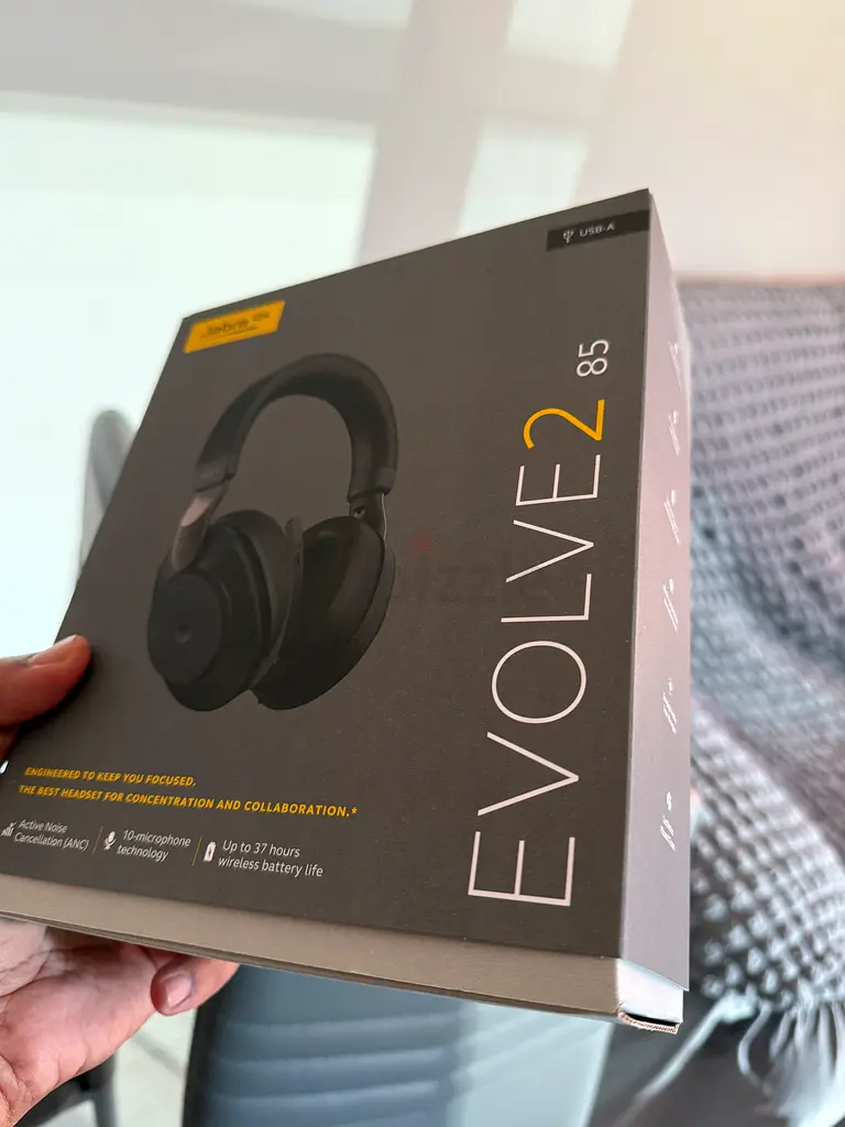 I'm selling my Jabra Evolve2 85 Wireless Noise Cancelling Headphones. These headphones are brand new and in flawless condition, as they've never been used. They come with a warranty for peace of mind. The Evolve2 85 is designed for professional use, offering exceptional sound quality and noise cancellation features to enhance your listening experience. Perfect for work or leisure.