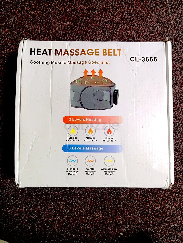 I'm selling a Heat Massage Belt for Relaxation. It's in flawless condition and has only been used once. This brand new item is perfect for anyone looking to relieve tension and relax. It features a compact design and operates at a low voltage of 12V, making it safe and easy to use. Ideal for home or office use, it provides soothing heat to help ease muscle fatigue and stress.