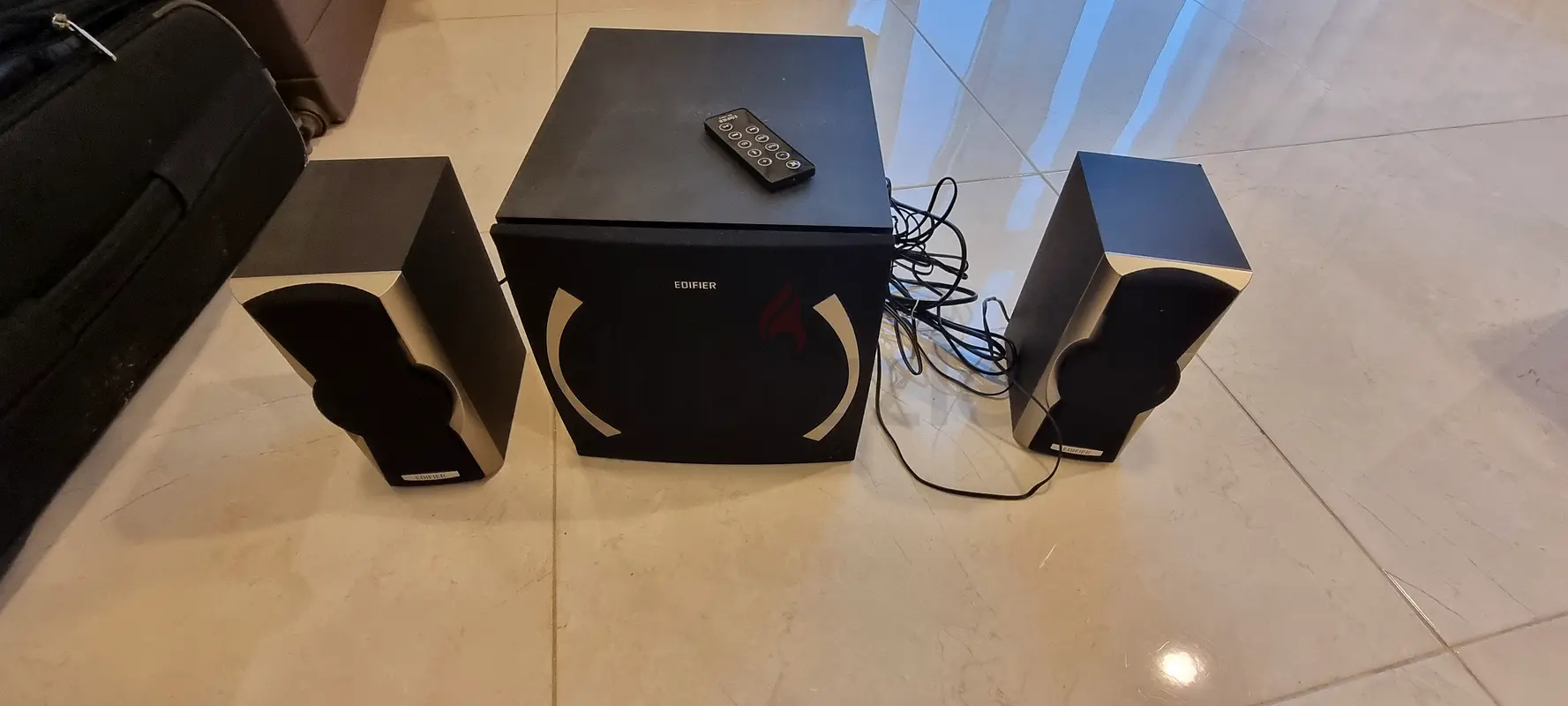 I'm selling my Edifier Multimedia XM6BT 2.1 Speakers, which are in excellent condition and have been lightly used over the last 1-2 years. These speakers bring a rich audio experience with a powerful bass boost feature that really brings your music and movies to life. They are versatile with both wired and wireless Bluetooth connectivity, making them perfect for any setup. The sleek design fits well with any décor, and I really appreciate how easy it is to control the volume and settings with the included remote. If you're looking for a solid speaker system that delivers great sound without compromise, this is the one for you.