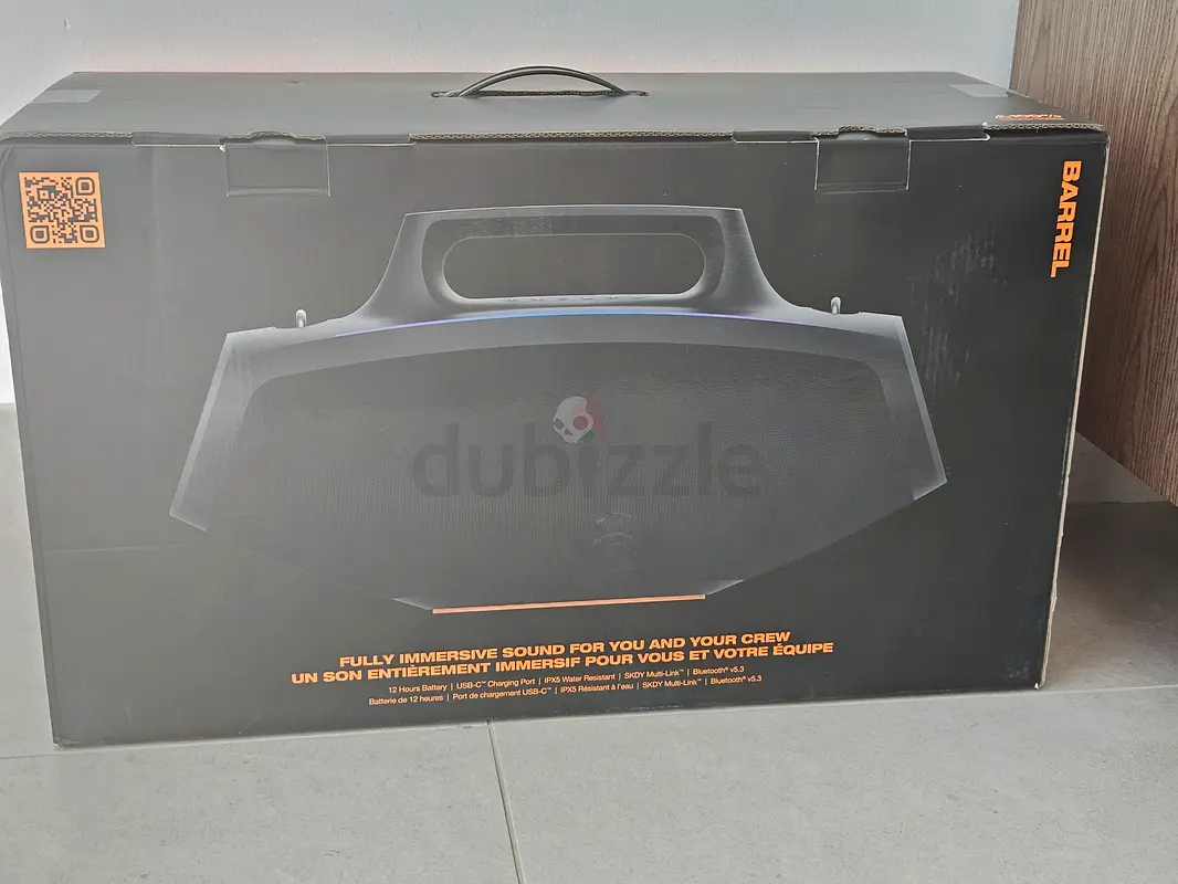 I'm excited to offer my brand new Skullcandy Barrel Bluetooth Speaker, which promises an immersive sound experience perfect for any gathering! This speaker is still in its flawless condition and has never been used, so you can enjoy all its features fresh out of the box.