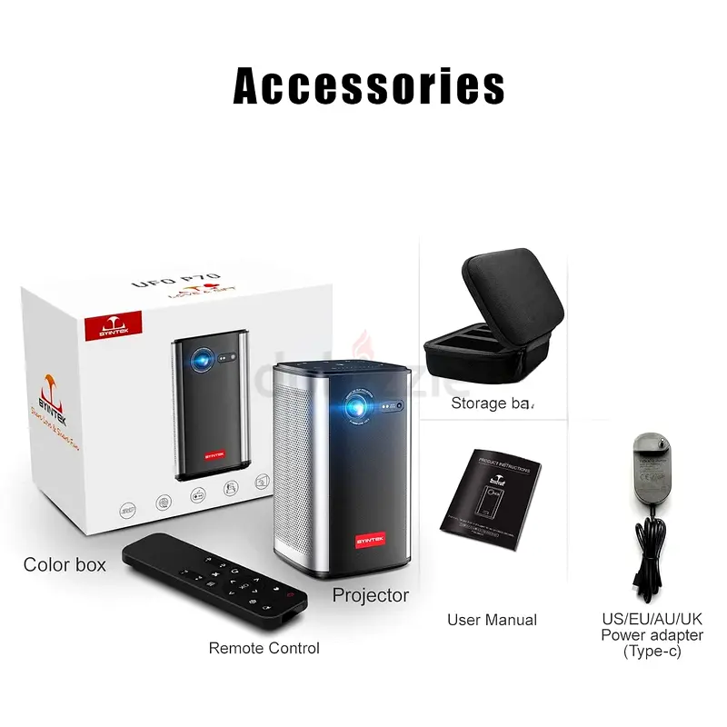 - Accessories included: Remote Control, Storage Bag, User Manual, Power Adapter (US/EU/AU/UK)