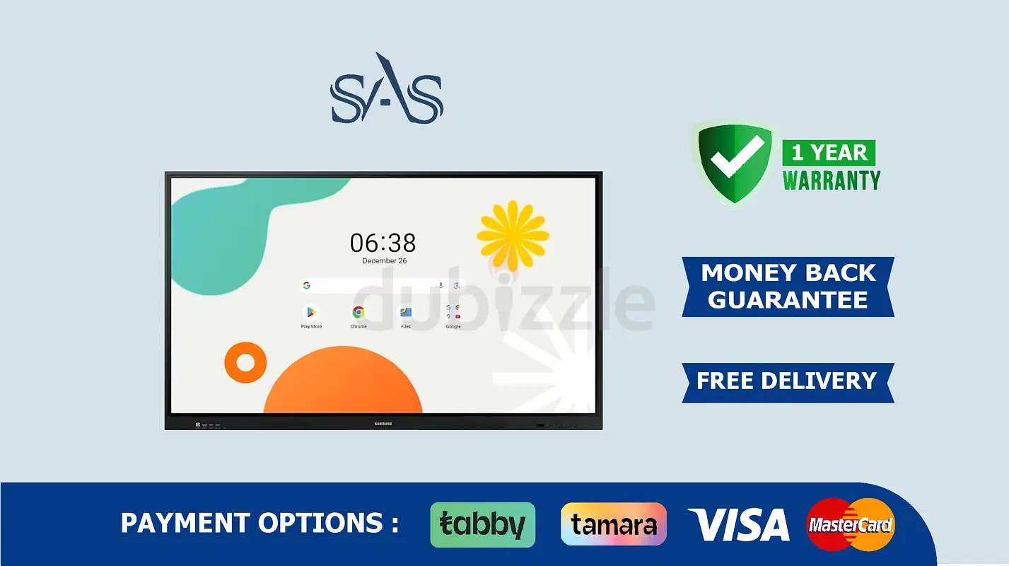 I'm selling a brand new Samsung 75 inch Interactive Display Flip 3 in flawless condition. This stunning UHD 4K display has never been used and offers vibrant visuals that are perfect for both professional and educational settings. With its wall-mountable design, it saves space while making a striking statement. Additionally, you'll benefit from a full year warranty and free delivery right to your door. This is an ideal opportunity to elevate your presentations or classroom experience!